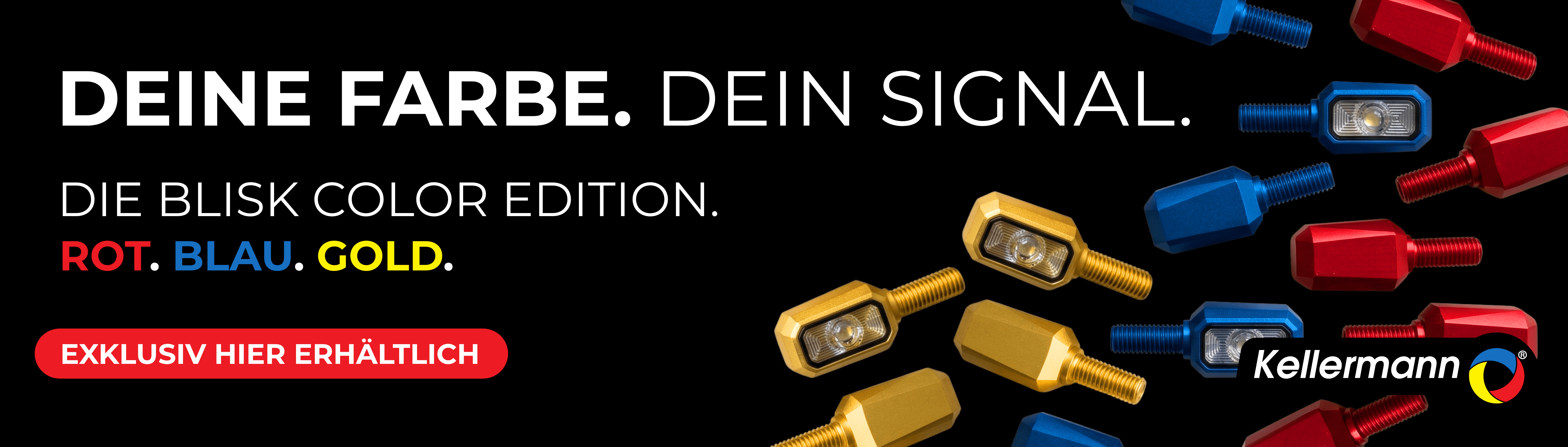 Kellermann Dash A – der super helle Blinker für unter den Lenker! Im Ruhezustand unscheinbar, in Action nicht zu übertreffen: Durch die Anbauposition unter dem Lenker verschwinden die neuen Kellermann Dash-Blinker optisch quasi am Motorrad. Gleichzeitig bieten die Kellermann Dash-Blinker bei minimaler Größe eine maximale Leuchtstärke. Damit gilt das Credo der kompakten Blinker von Kellermann jetzt auch für die neue Generation von Armaturenblinker: „sensationell klein – spektakulär hell“.Die optimierte Lichtlenkung wird auch bei der neuen Kellermann Dash®-Serie durch ein ausgeklügeltes System aus Linsen und Reflektoren erreicht. Zum Einsatz kommen hier die Kellermann HighPower LED** und EXtranz® - Extreme Optical Transparency Technologie.Die komplette Elektronik des Dash A Dark ist innerhalb des Gehäuses untergebracht, damit kann dieser Blinker direkt am 12 Volt Netz betrieben werden.* *U. U. ist elektronisches Zubehör zur Regulierung der Blinkfrequenz nötig.**Kombination aus der IC gesteuerten Longlife Protection Guard® Schaltung mit Hochleistungs-LEDs neuester Bauart. ECE-geprüft für vorne Sensationell klein - spektakulär hellstark getöntes Blinkerglas EXtranz® - Extreme Optical Transparency Technology Kellermann HighPower LED Technologie Longlife Protection Guard®, IC gesteuert, 330 kHz getaktet Hochwertiges Metallgehäuse Geeignet für 12 Volt Gleichspannungsbordnetze Europaweit geschütztes Design