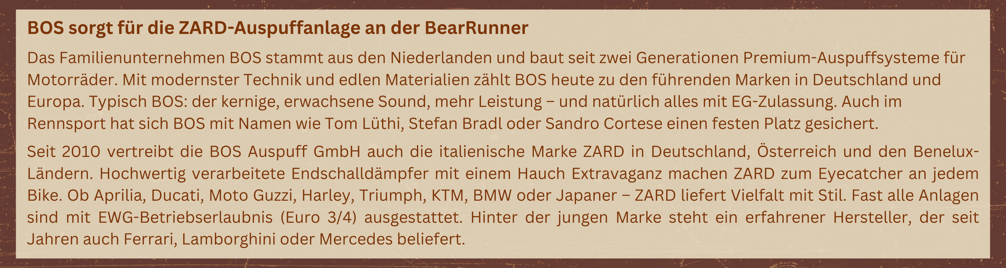 # BOS sorgt für die ZARD-Auspuffanlage an der BearRunner